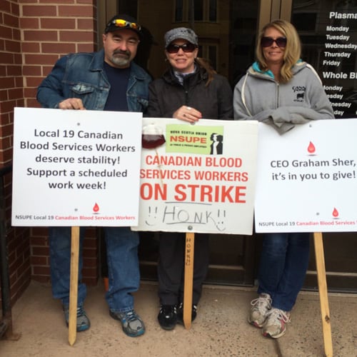 Canadian Blood Services (CBS) workers with the Nova Scotia Union of Public and Private Employees (NSUPE) will be picketing outside the CBS Winnipeg office next week, and the MGEU is proud to stand in solidarity with them.