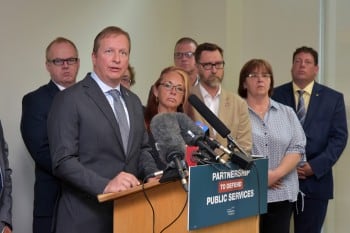 The Partnership to Defend Public Services represents more than 110,000 workers who are members of: AESES, CUPE, General Teamsters Local 979, IBEW 2034, IBEW 2085, IBEW 435, Operating Engineers of Manitoba Local 987, LALA, MAHCP, MGEU, MNU, MTS, PIPSC, UA Local 254, PSAC,UFCW 832, UMFA, UNIFOR, USW 7106, USW 7975, USW 8223, USW 9074, UWFA, WAPSO IFPTE Local 162, BUFA, IATSE Local 63, UBC Local 1515, PCAM, and the MFL.